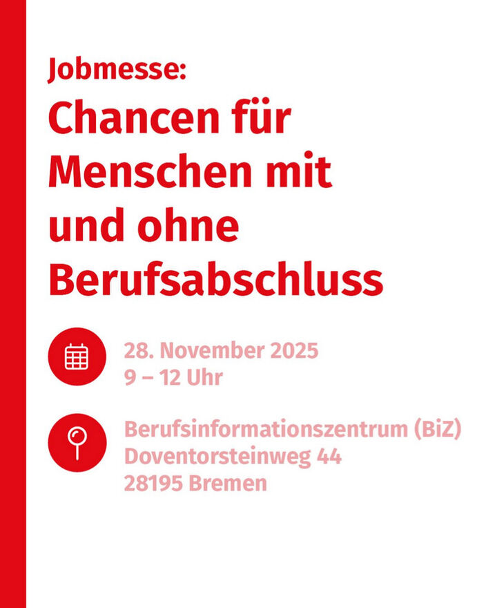 Am 28.11.2025 findet im Berufsinformationszentrum (BiZ) die Jobmesse vom Arbeitgeber-Service Bremen statt.